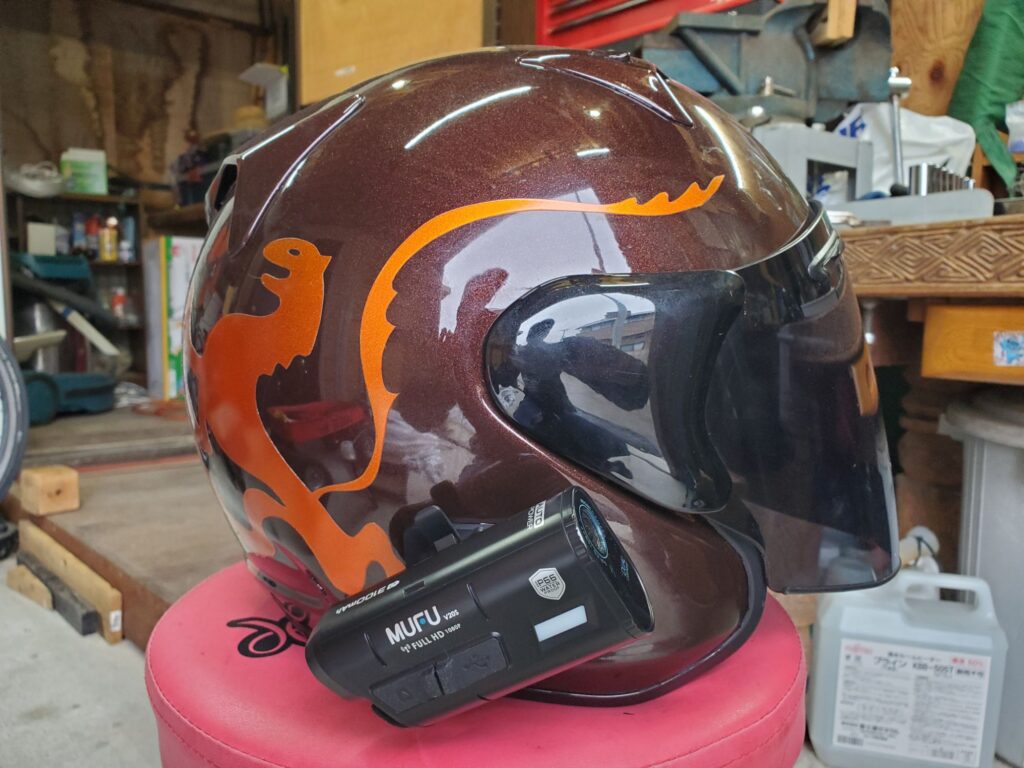 以前から使っているジェットヘルメットに付いているMUFUドラレコ!