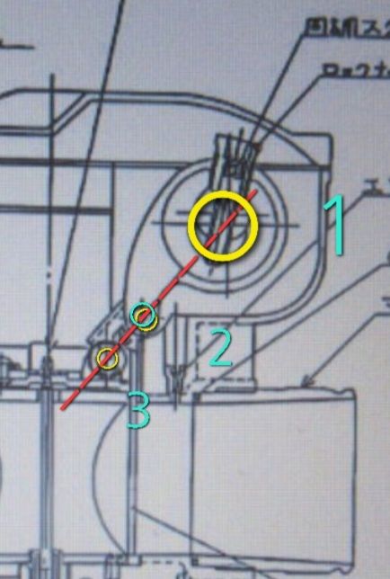 軸②の位置が①と③の直線上になるようにアジャスターで調整します!(この位置を基準にします)