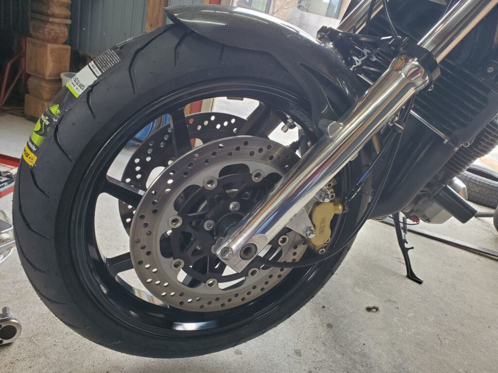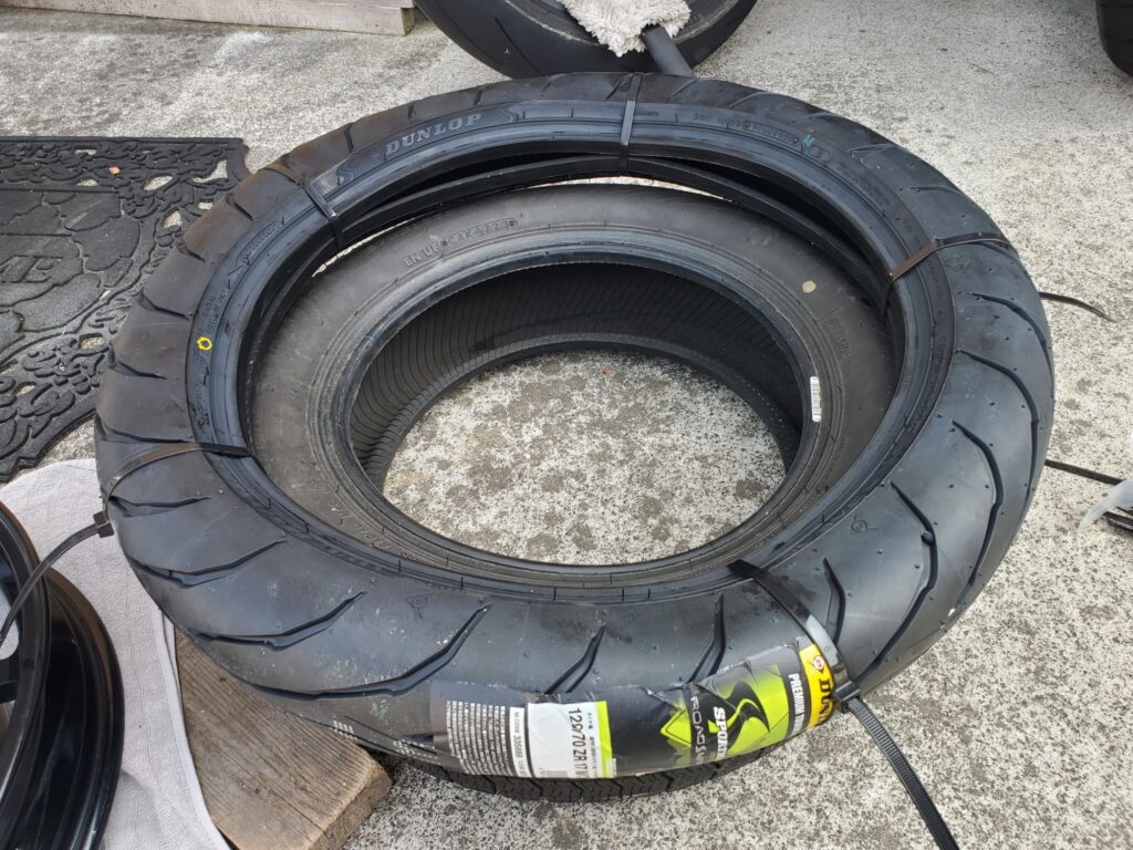 新しいタイヤなのに、溝の内側がヒビ割れてて怖いですねー